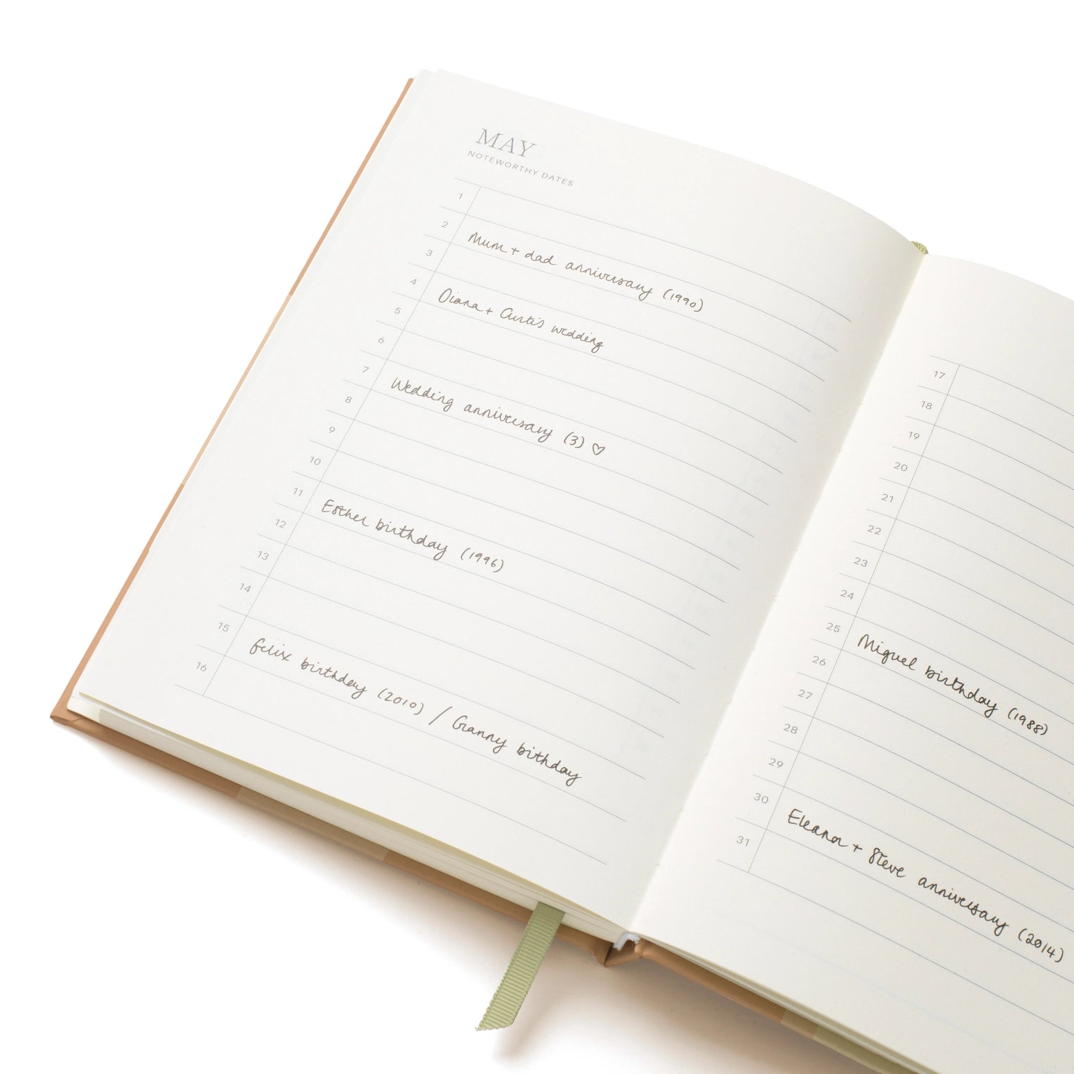- Pages for noteworthy dates, birthdays and anniversaries