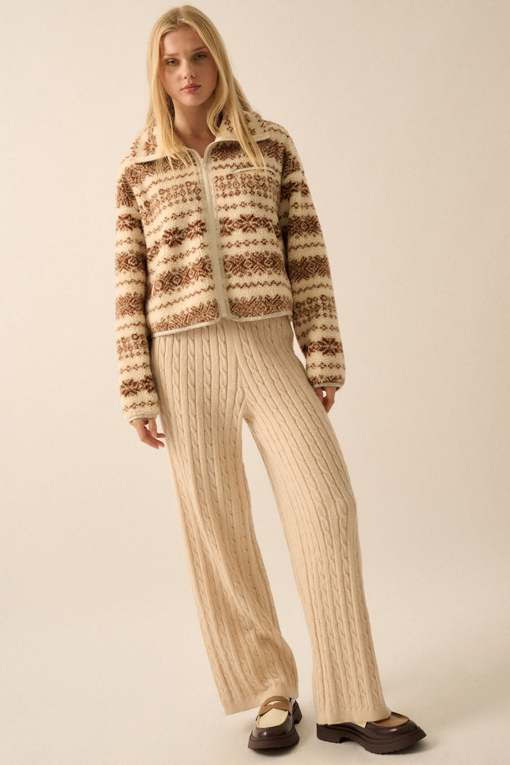 Alpine-Print Sherpa Fleece Pocket Jacket
