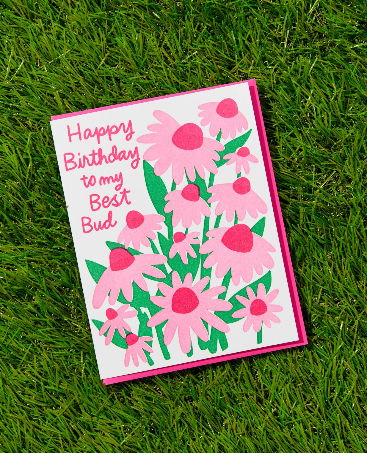 Best Bud Flowers Birthday Letterpress Greeting Card