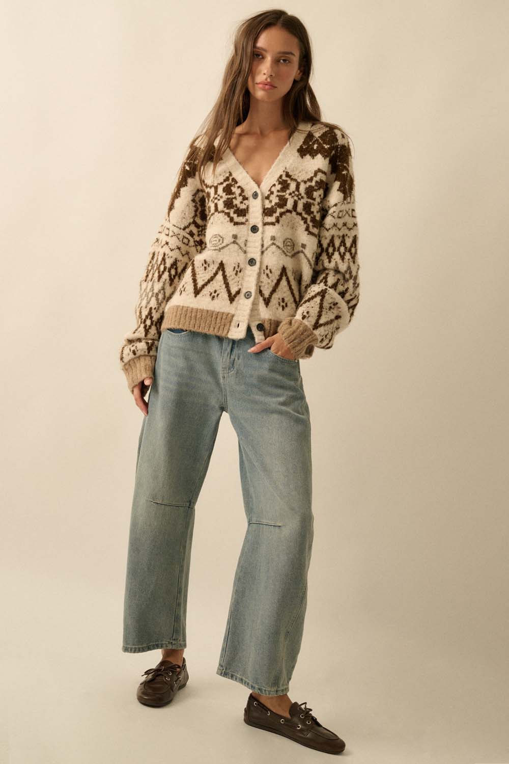 Brushed Alpine-Knit Button-Front Cardigan