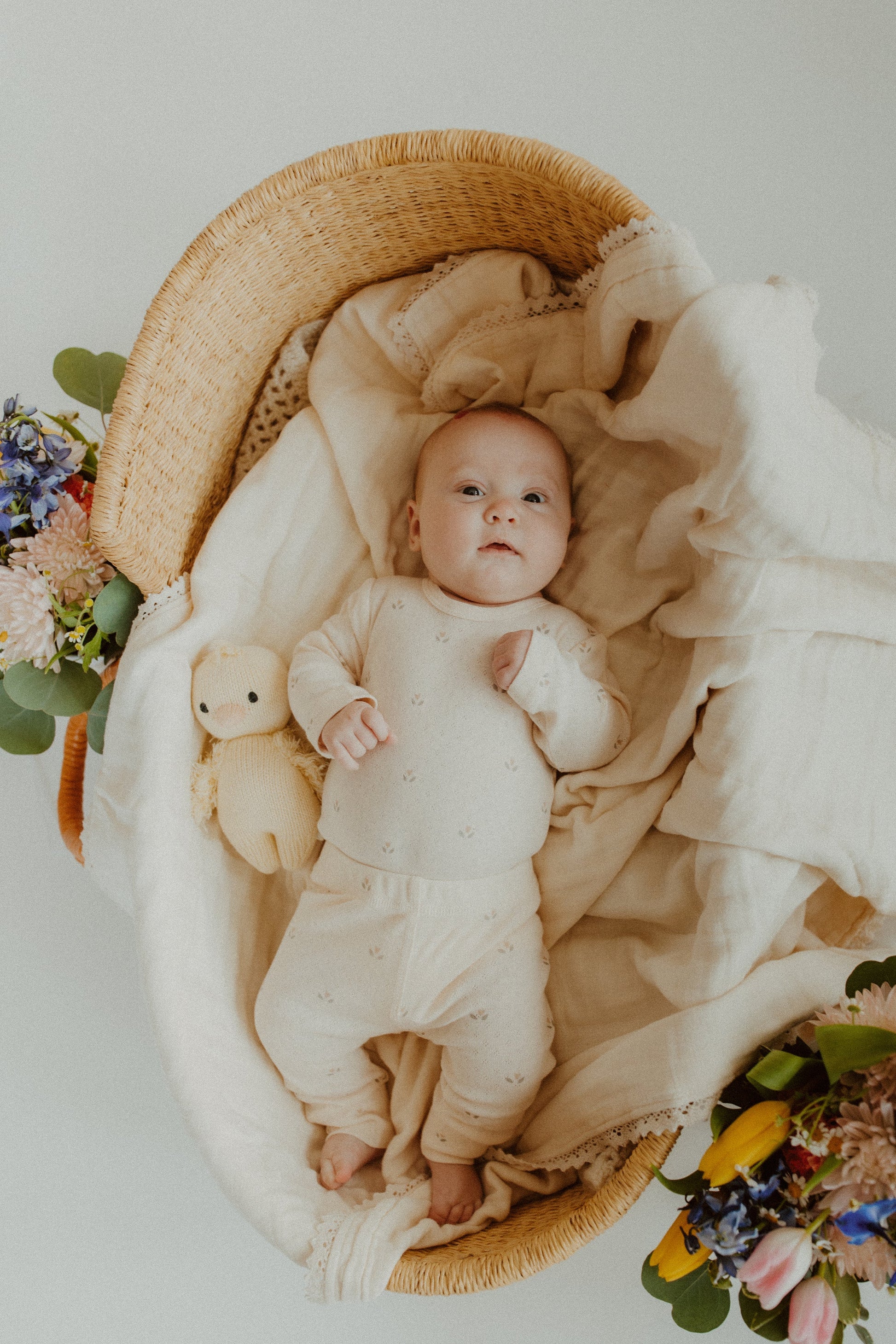 Treat your little one to the softest, most stylish loungewear with our Cream Tulip Pointelle Set. Designed with comfort in mind, this set features gentle pointelle fabric and an adorable tulip design that adds a sweet touch. The bodysuit is complete with snaps to make for easy diaper changes while the pants match perfectly. The soft, breathable material ensures all-day comfort, whether your child is napping or playing. Perfect for casual outings or cozy days at home, this set is a must-have for little fashionistas.