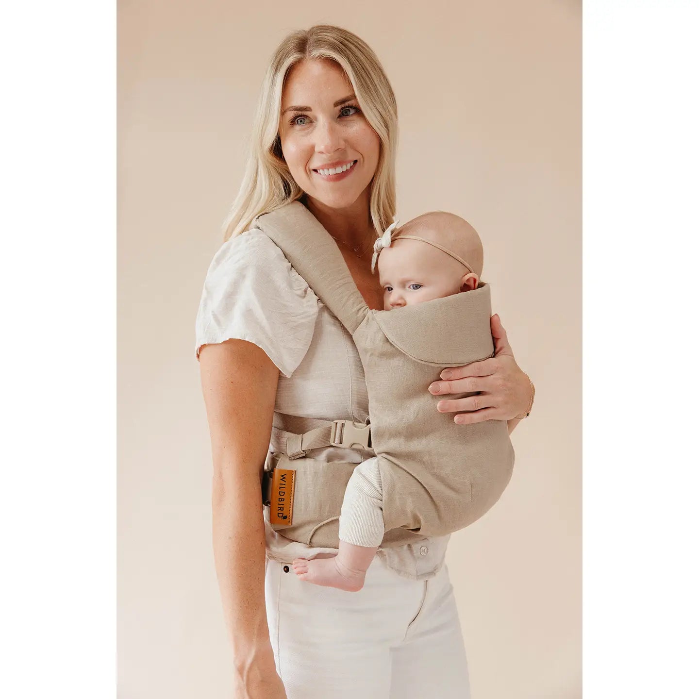 Our most supportive baby carrier that is simple and intuitive to use. The perfect first-time baby carrier and beyond. Beautiful design combined with technical features for maximum comfort to carry babies from newborn to 45lbs. The Aerial Carrier is designed for front carry (facing inwards) and back carry.