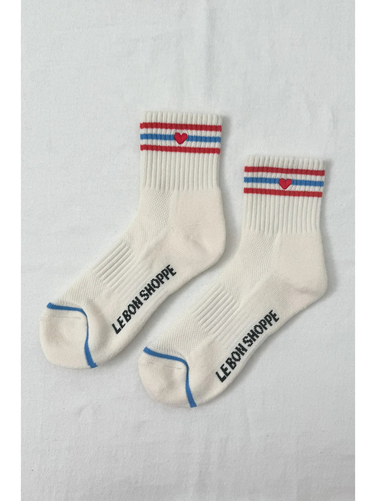 Say hello to the cutest crew socks to exist. Similar to the Boyfriend Socks, except with a short leg that fits true to the classic crew length. Under the classic triple contrast stripe sits an embroidered heart, adding the sweetest touch of affection to any outfit.