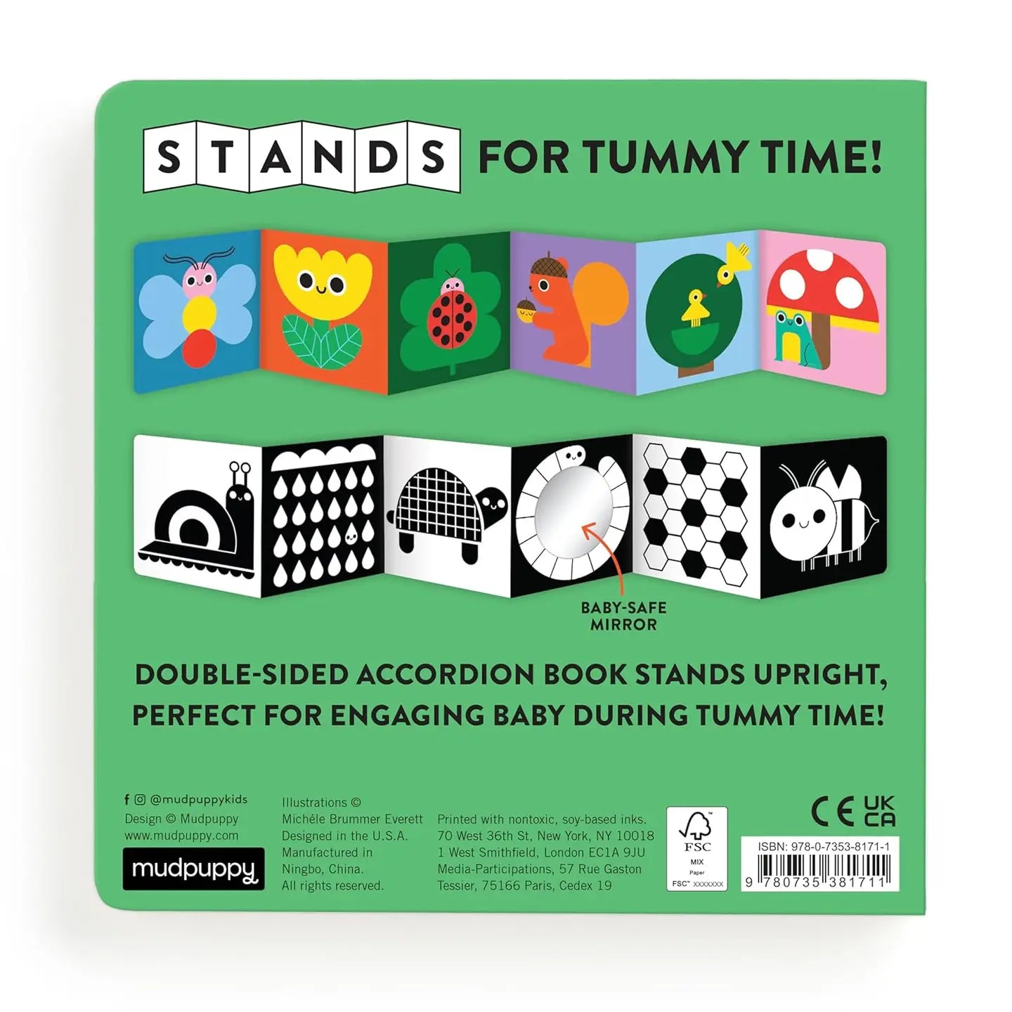 Make the most of tummy time with your baby with the Nature My Tummy Book from Mudpuppy. Your baby will fall in love with the beautiful artwork in this double-sided accordion book that opens to stand up on the carpet, in the bed or in the crib making it the perfect addition for tummy time. Includes a baby-safe mirror so your baby can see their reflection! The artwork is illustrated by Michéle Brummer Everett from South Africa