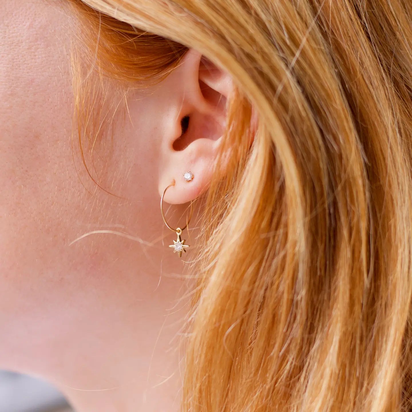 Material: Gold filled hoop with a gold dipped cubic zirconia star