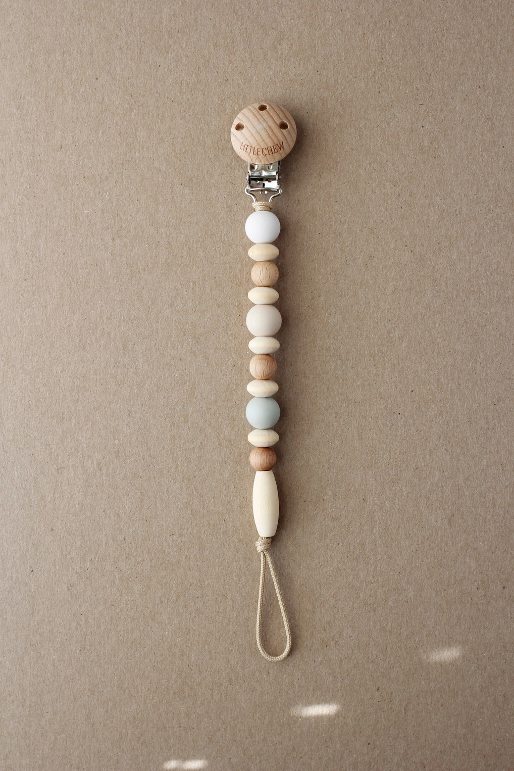 Our Amor pacifier clip is handmade of food-grade silicone and a mix of natural wood that have been treated with coconut oil. Versatile, timeless and practical, inspired by nature, its beautiful colors and simplicity.
