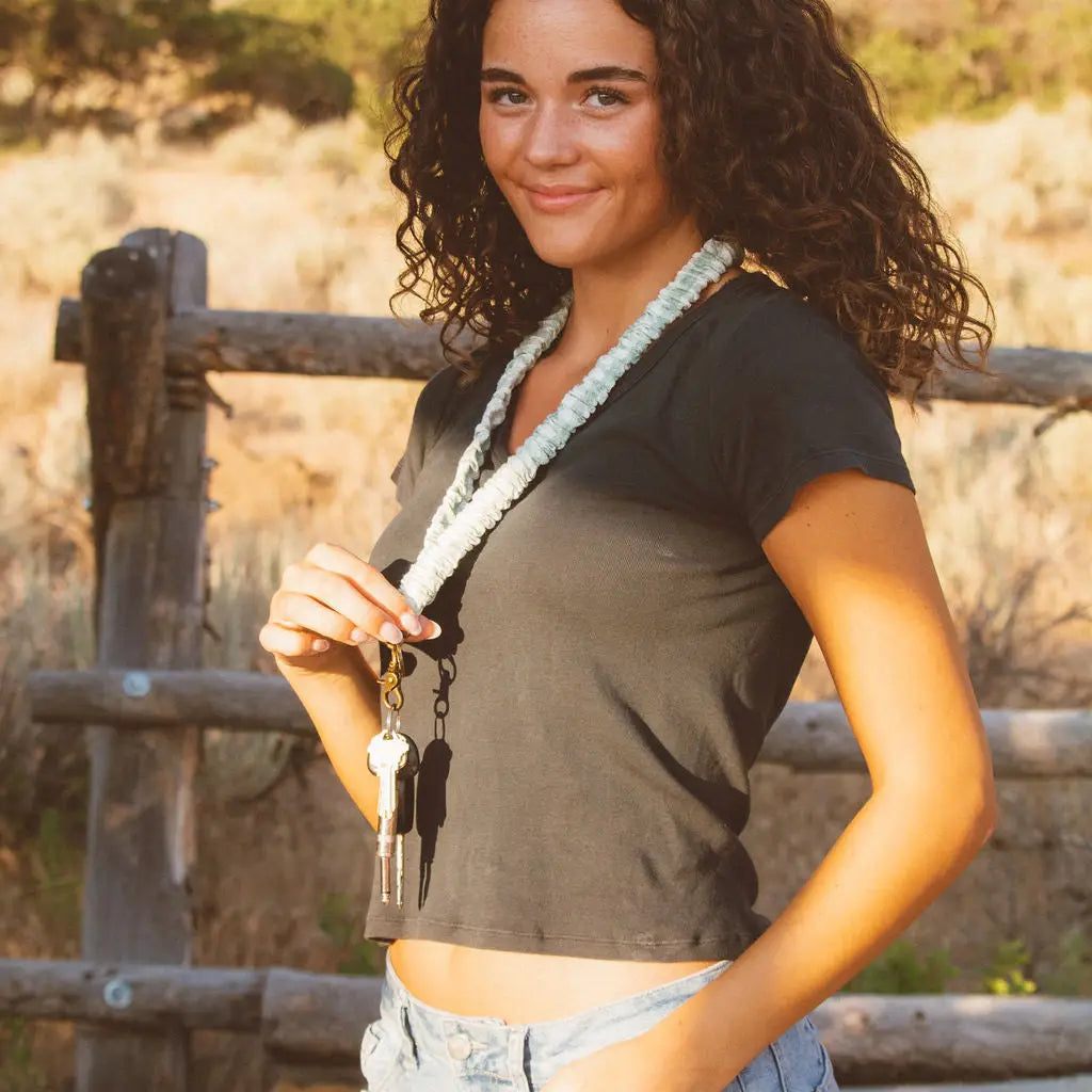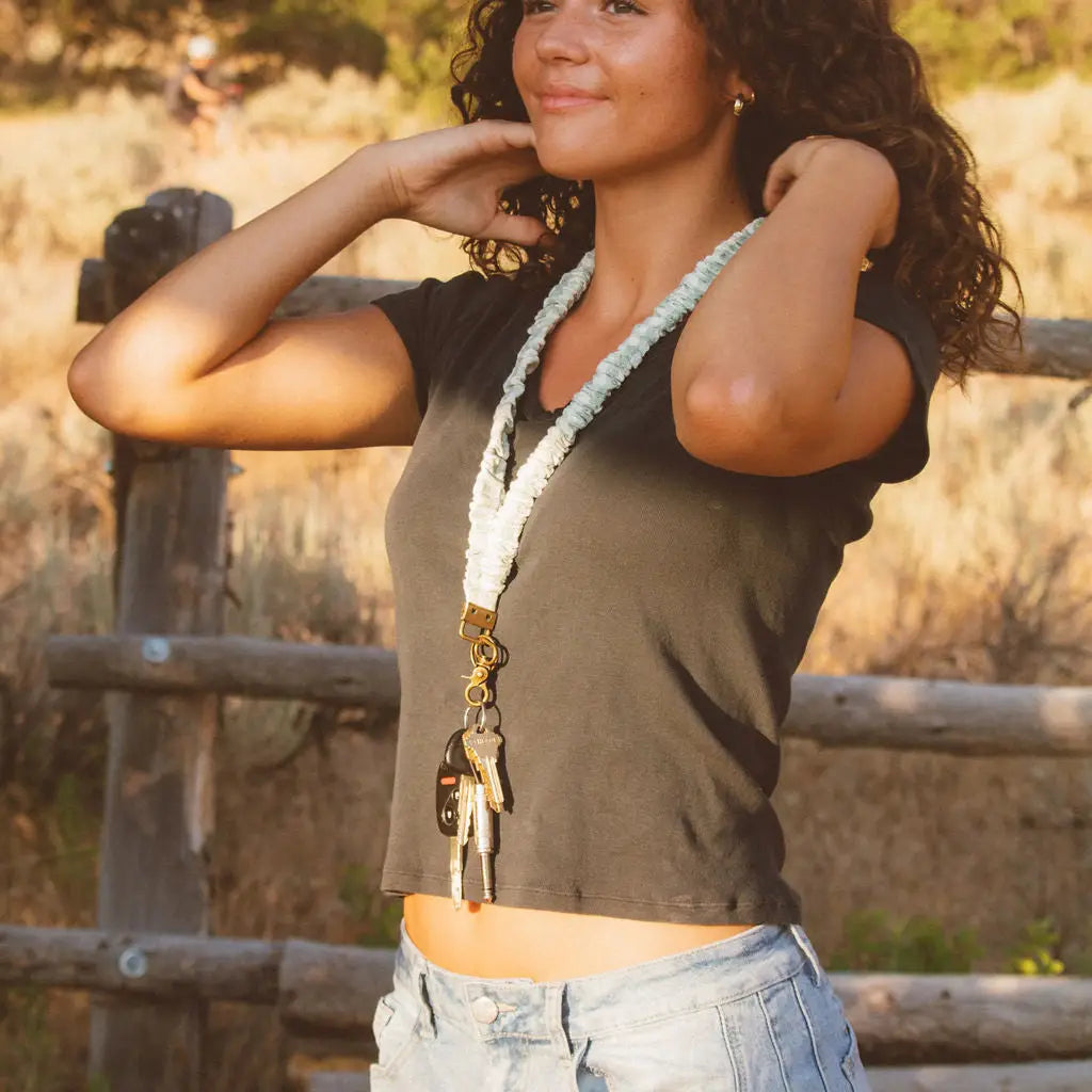 This lanyard is an absolute must have! It's the perfect lightly textured fabric and the cutest green and white gingham. This one will be perfect for back to school and the fall season. You can't go wrong with gingham--it'll go with all your outfits this fall! Gone are the days of full hands with no pockets; our lanyards give you one less thing to worry about.