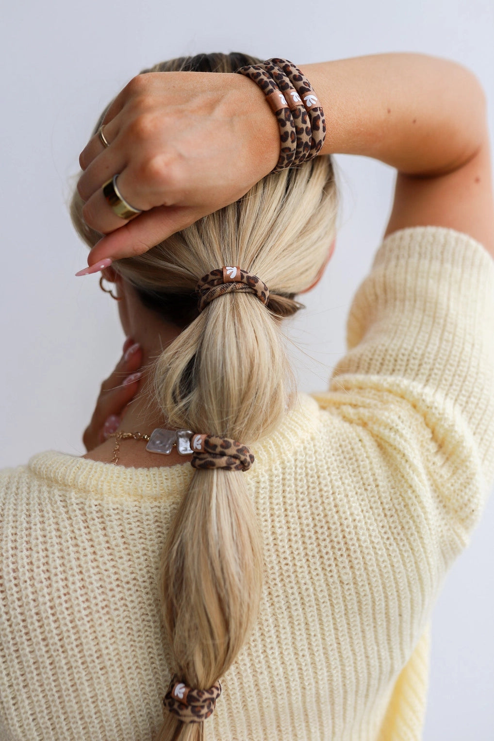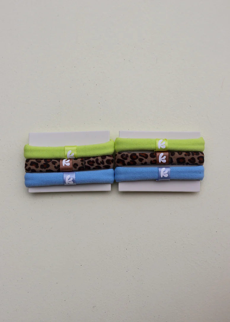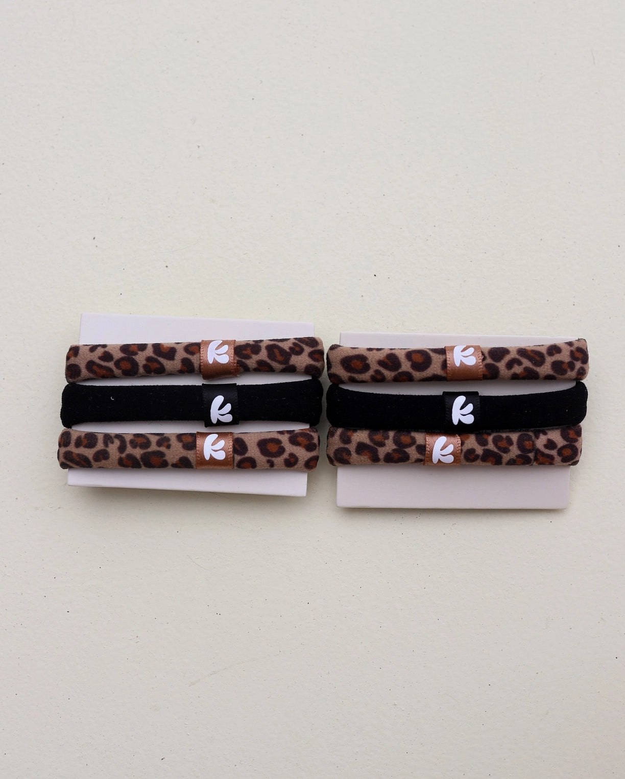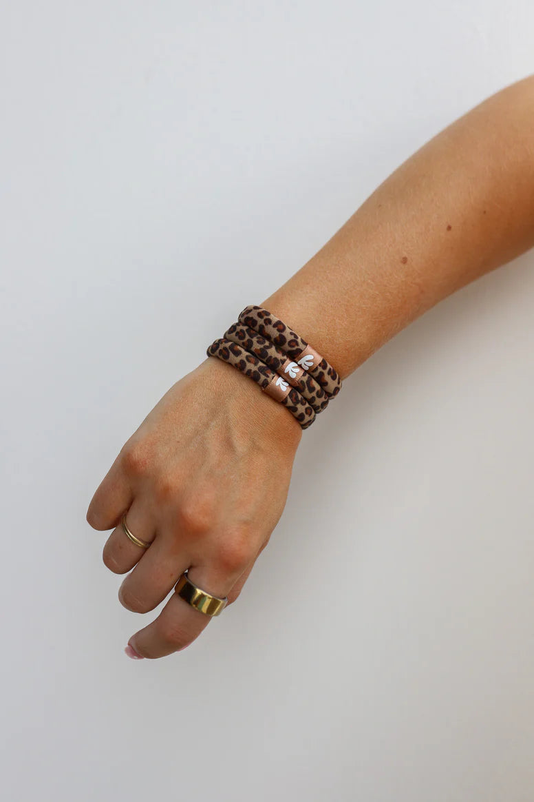 These come in cheetah and solid color combos all completed with our very own KAXI logo on it!! Crafted with a durable yet snug nylon material, these hair ties are designed to keep your hair in place without tugging or causing pain. They are perfect if you need a tight elastic for your high intensity workout, but still offer a stylish look and this elastic is just fabric with no elastic on the inside to damage your hair. Say goodbye to breakage around your face. Works for thin to thick hair! Perfect for pool days, high intensity workouts, or everyday use!