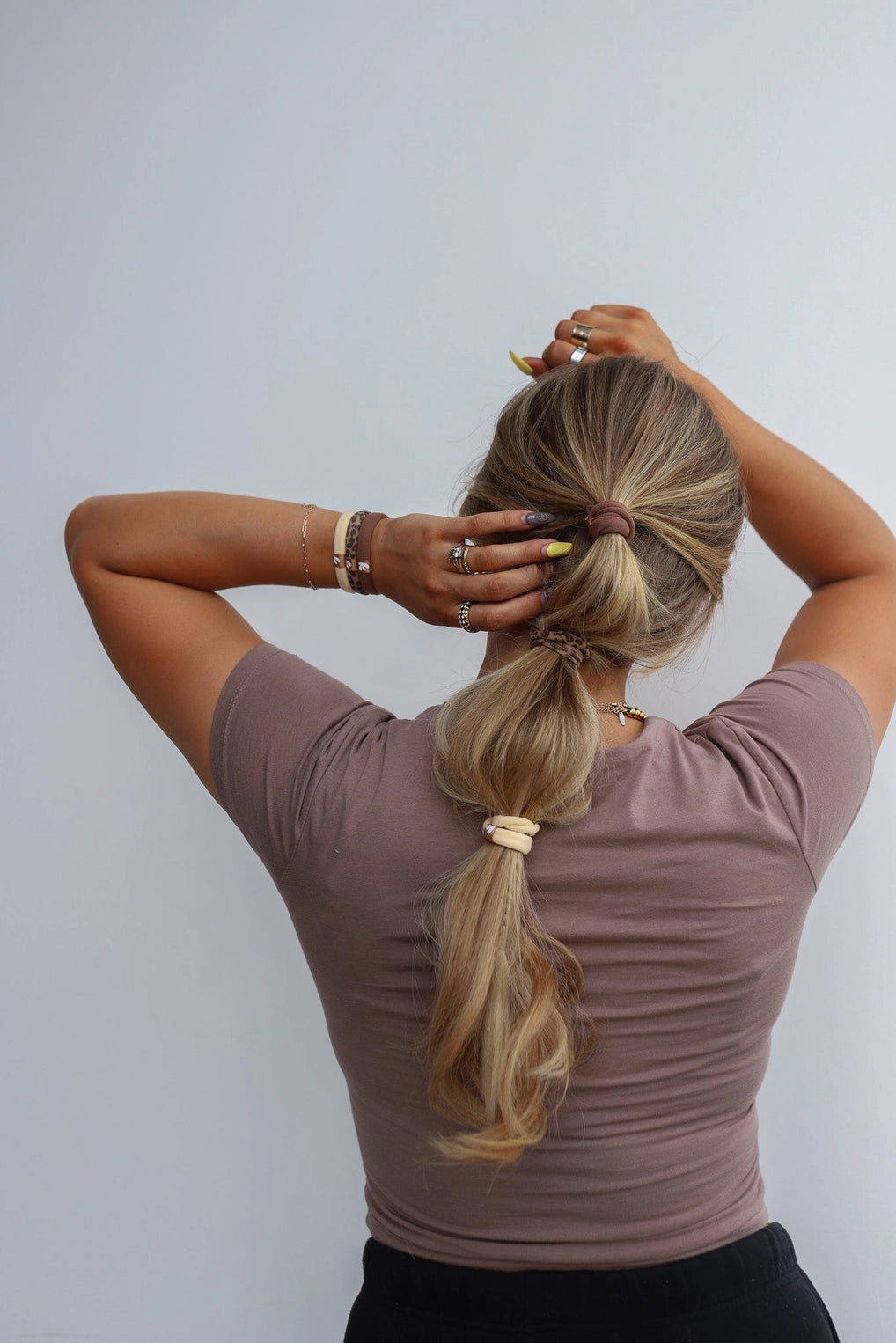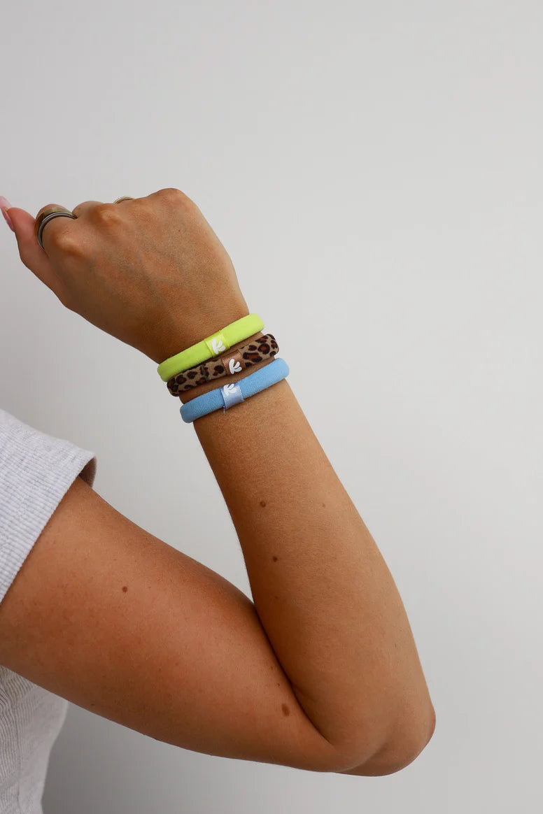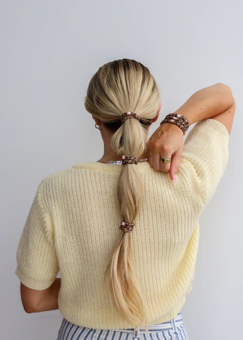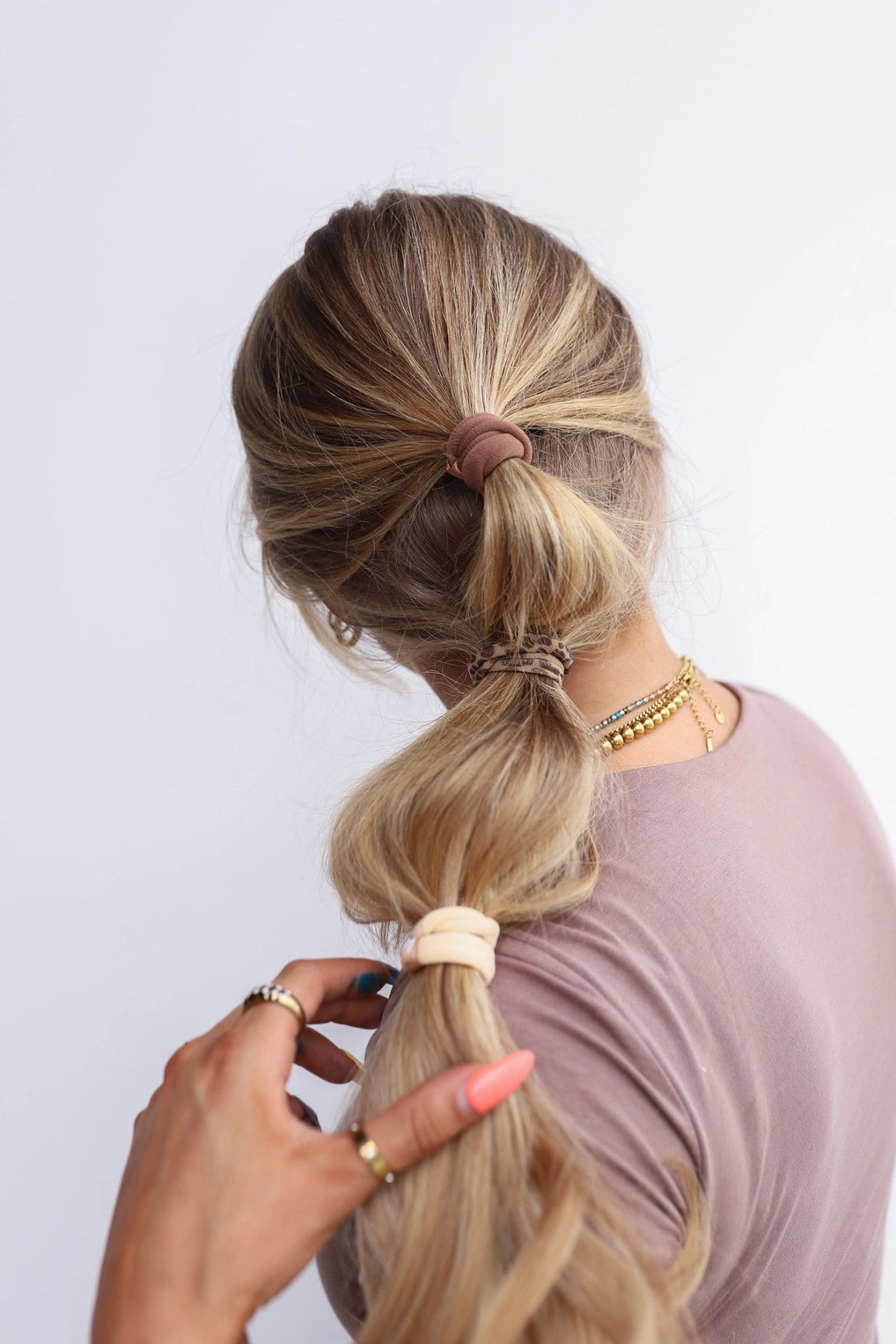 These come in cheetah and solid color combos all completed with our very own KAXI logo on it!! Crafted with a durable yet snug nylon material, these hair ties are designed to keep your hair in place without tugging or causing pain. They are perfect if you need a tight elastic for your high intensity workout, but still offer a stylish look and this elastic is just fabric with no elastic on the inside to damage your hair. Say goodbye to breakage around your face. Works for thin to thick hair! Perfect for pool days, high intensity workouts, or everyday use!