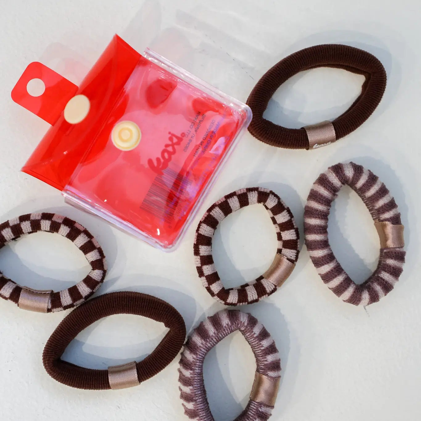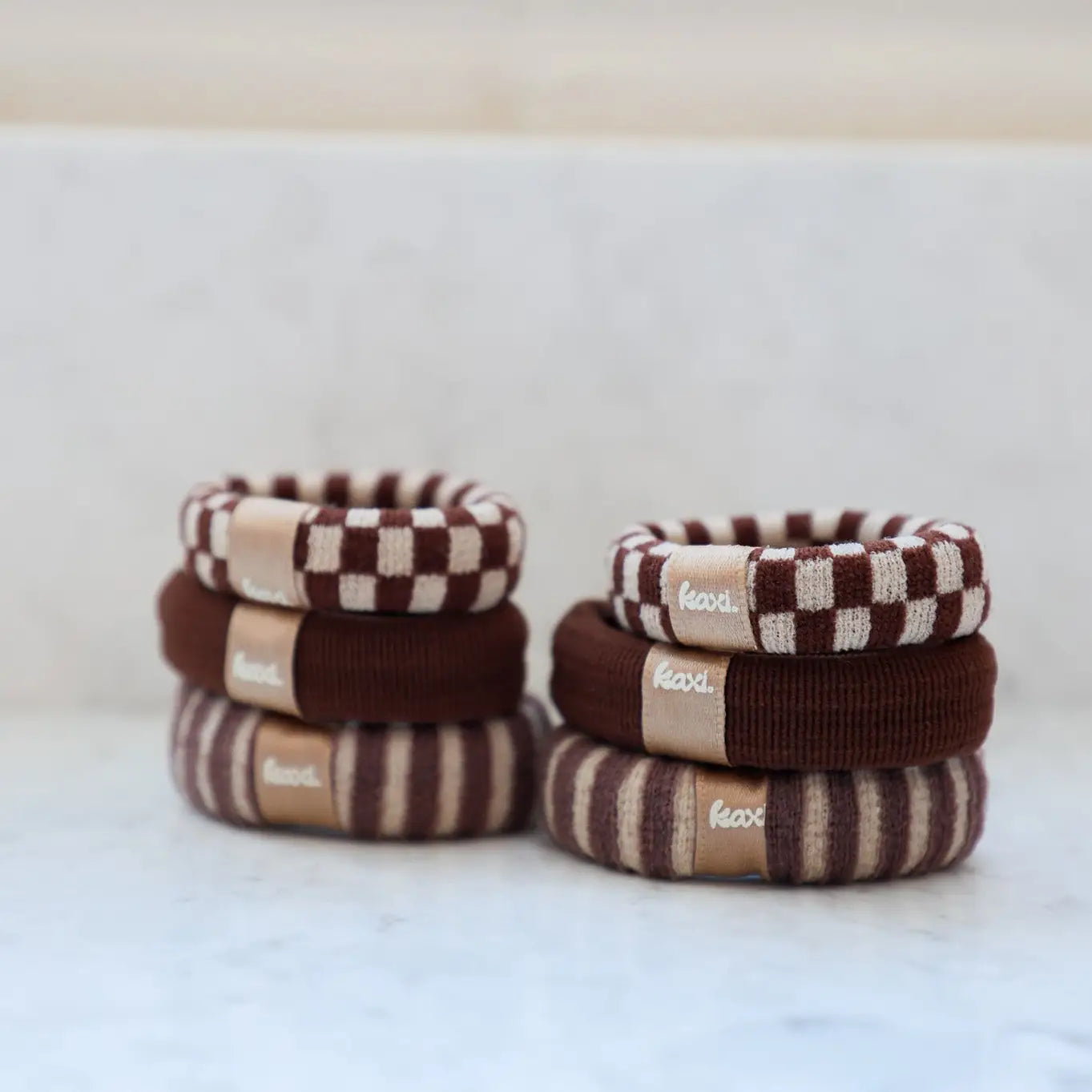 These come in 3 different patterns all completed with our very own KAXI logo on it!! Get a pack of 6 neutral colored hair ties: a checkered, solid, and striped patterns! Crafted with a durable yet snug nylon material, these hair ties are designed to keep your hair in place without tugging or causing pain. They are perfect if you need a tight elastic for your high intensity workout, but still offer a stylish look and this elastic is just fabric with no elastic on the inside to damage your hair. Say goodbye to breakage around your face. Works for thin to thick hair! Perfect for pool days, high intensity workouts, or everyday use!