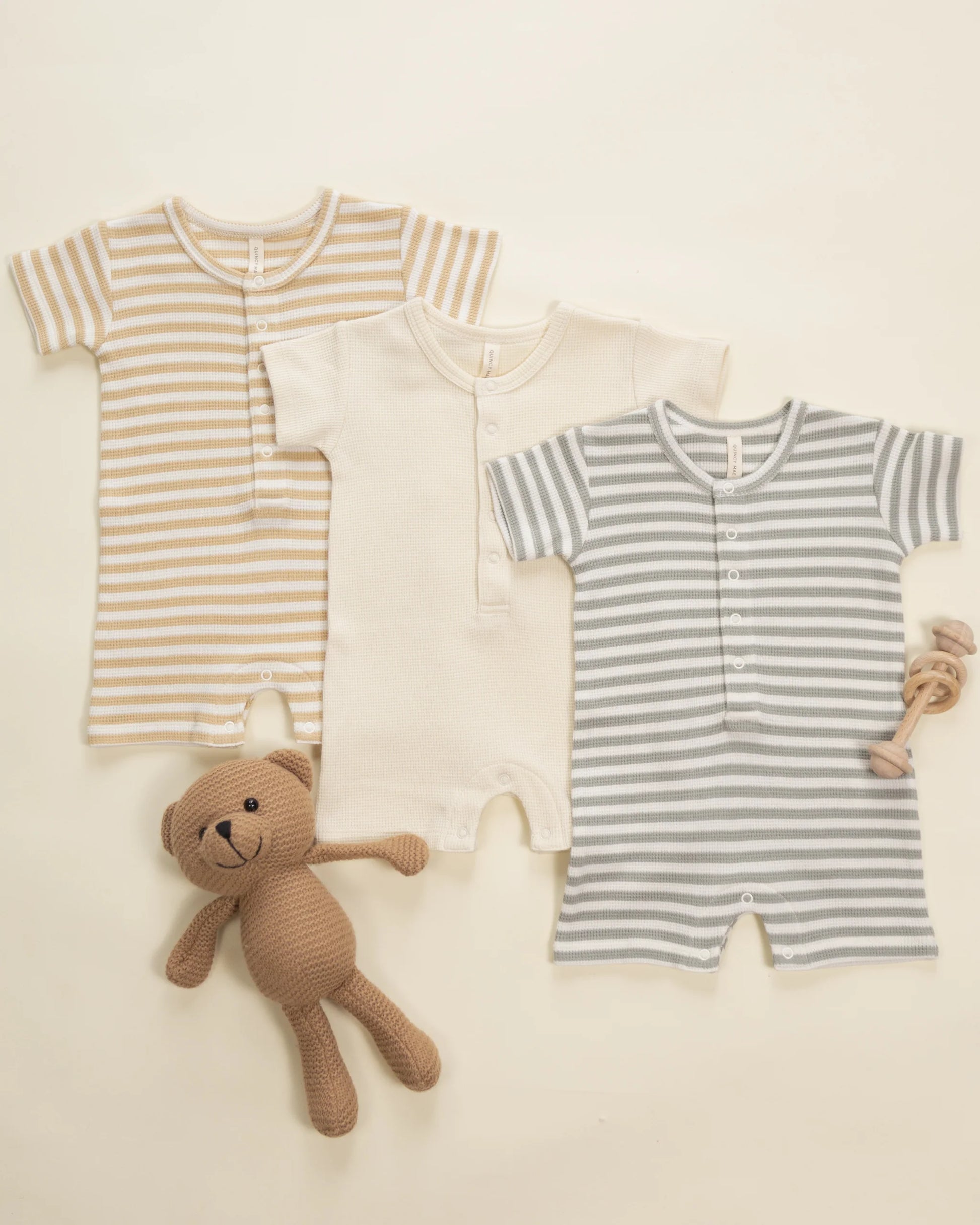Our Waffle Snap Romper is a sweet and easy warm weather wardrobe go-to. Designed with front and bottom snaps for easy changes.