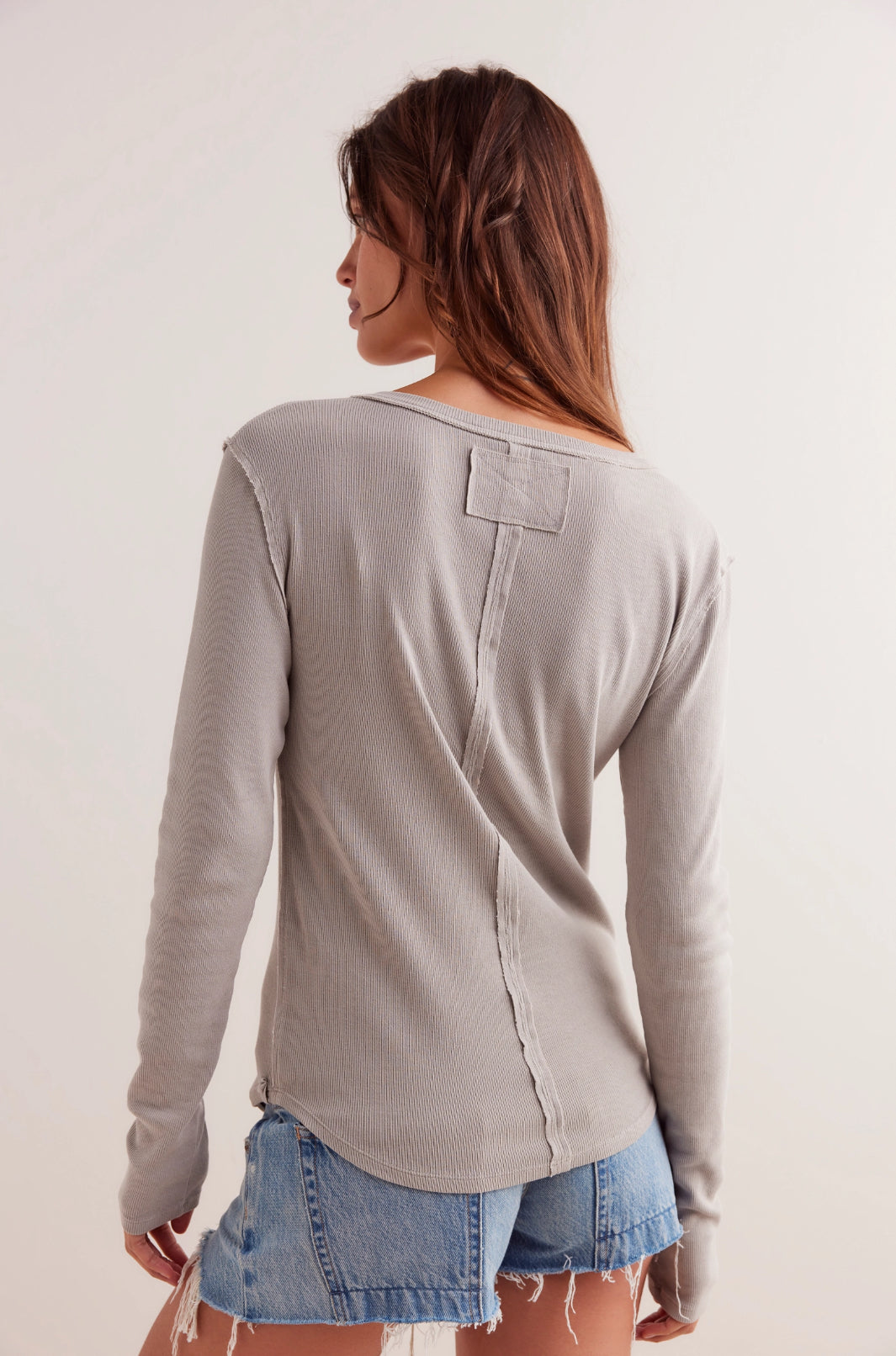 The long-sleeve you can wear with absolutely everything. This henley from our We The Free collection features a soft cotton fabrication and slim-fitting silhouette with defined seams and button closures.