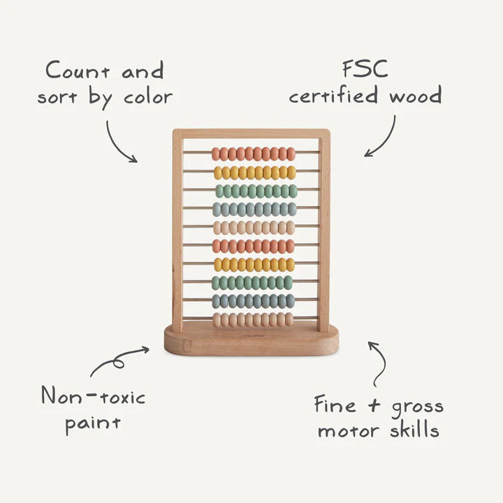Introduce a timeless touch to playtime with this beautifully crafted wooden abacus, designed in a palette of muted colors that bring calm and to any nursery or playroom. Each smooth wooden bead glides effortlessly along sturdy rods, inviting little hands to explore counting, color sorting, and patterns in an engaging, hands-on way. Made from FSC certified wood and finished with child-safe, non-toxic paint, this abacus is as much a learning tool as it is a decorative piece. Perfect for toddlers and preschoolers, it combines style with functionality, encouraging thoughtful play and curiosity in a delightful way.