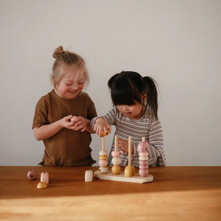 Introduce children to matching and sorting with our wooden multi shape stacker. Crafted from FSC certified wood and non-toxic paint, this is a timeless educational toy designed to help teach little learners shapes, colors and spatial reasoning. The set includes 20 wooden shapes with smooth edges that are made for tiny hands. Littles can improve fine motor skills and hand-eye coordination as they grasp, manipulate and fit the pieces onto the four pegs.